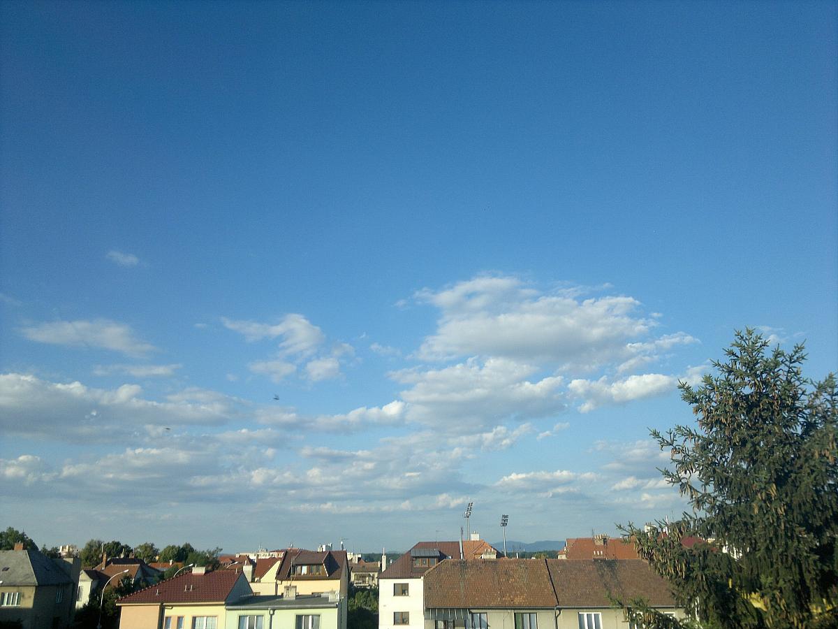 skoro jasno, na SZ několik mráčků. Tady dosud nejteplejší den v červenci a další dny má být ještě tepleji.