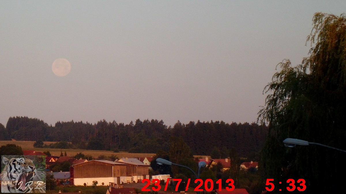 Nad SZ obzorem vysoká oblačnost. Vane slabý JV vítr.