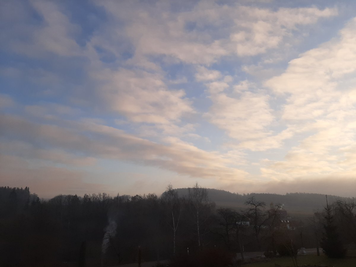 Začíná slabě sněžit, oblačnost 99,1%, tlak 1022,65hPa→, poc.teplota -3,36°C, tepl.ros.bodu -1,78°C, rel.vlhkost 92,4%, abs.vlhkost 4,26g/m3, S vánek 6° 4,716km/hod.(1 Bft), ozon 314,7D.U., AQI 29(velmi dobrá kvalita ovzduší), UV index 0,2(nízký), windchill -2,19°C, humidex -2,98°C, světlo 1093,8 lx, včerejší průměrná teplota 0,84°C.