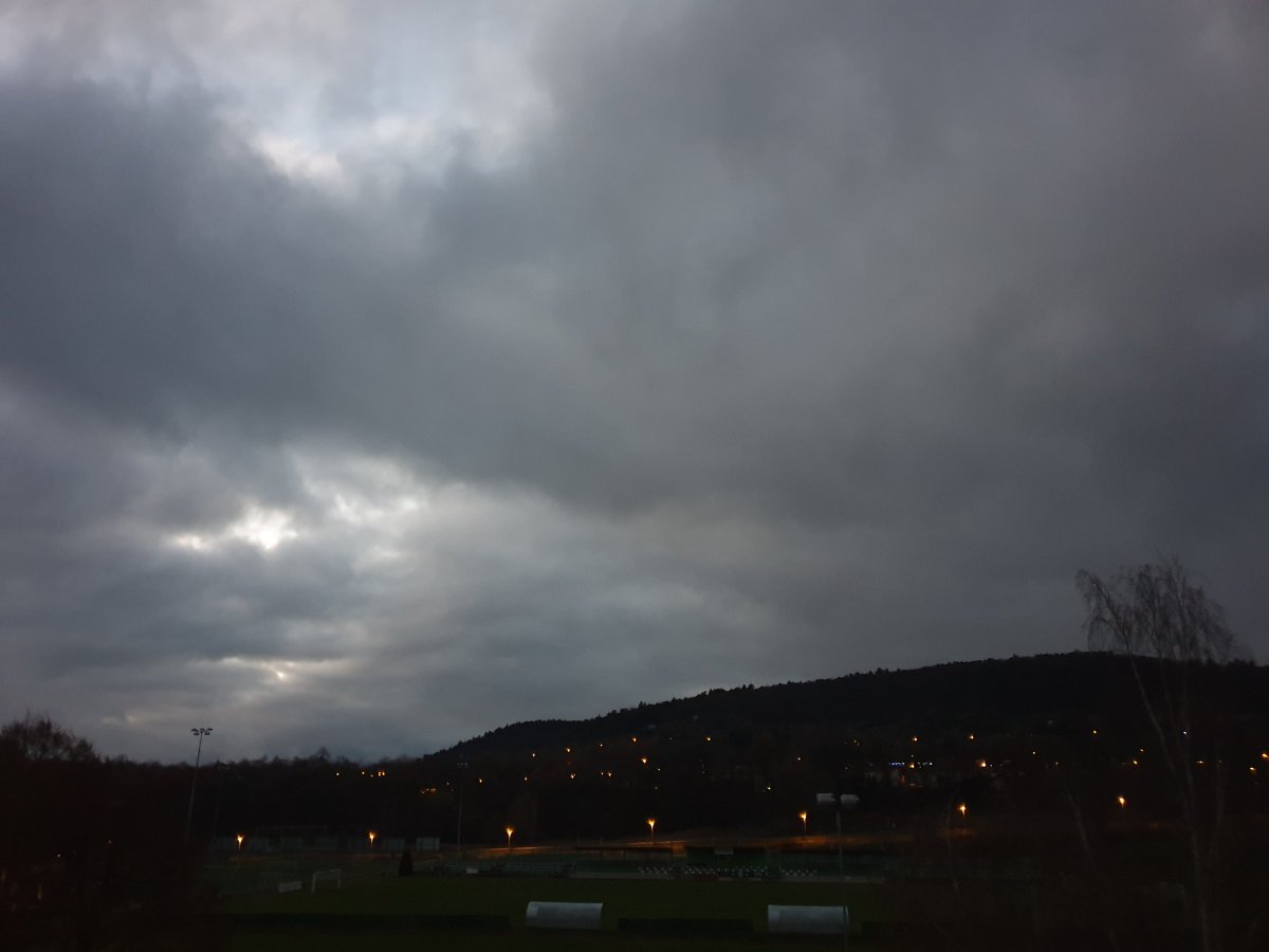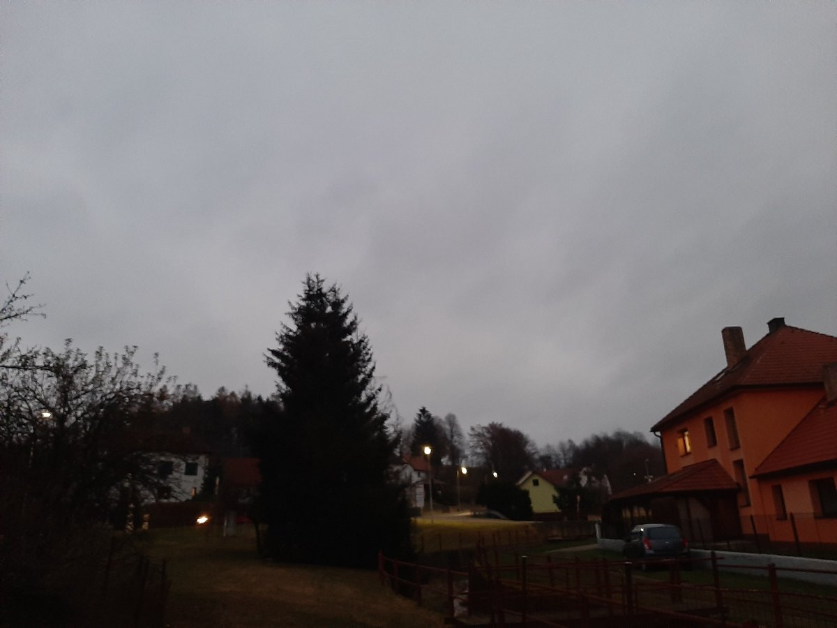 Dole u města sníh nesouvislý, od 350 m.n.m. pomalu přibývá a v 500 m.n.m. je cca 5-6 cm.