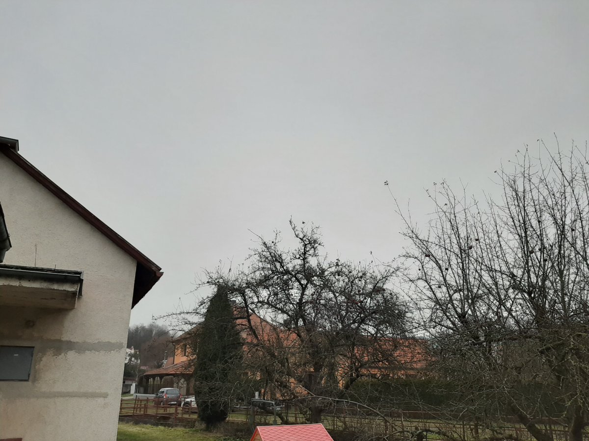 zataženo, mlha a občasné sněhové mrholení, slabý vítr, v okolí města od vyšších poloh se tvoří ledovka a námraza, -0.5°C