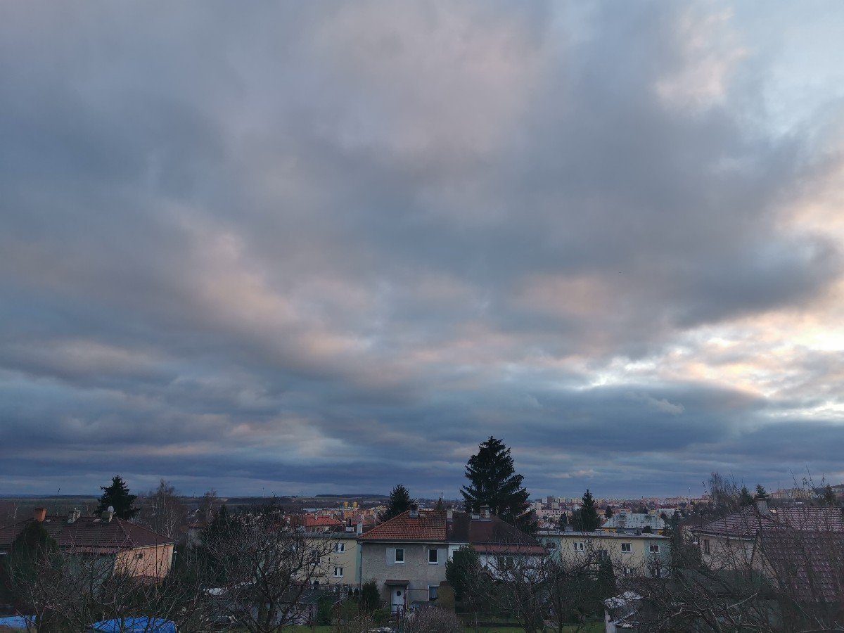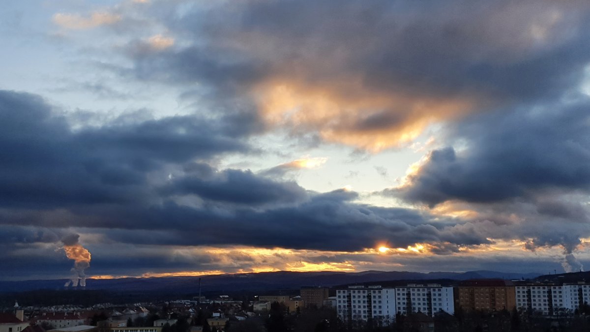 Aktuálně převažuje většinou zataženo a slabě, drobně sněží dnes zatím 3 mm srážek a fouká většinou slabý vítr