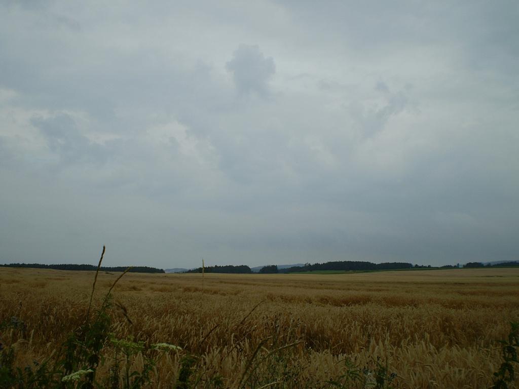 dnešních 21° je příjemných - není dusno, fouká chladný větřík - foto z 2013 07 30 v 07:47 zachycuje co udělala bouřka s kukuřicí