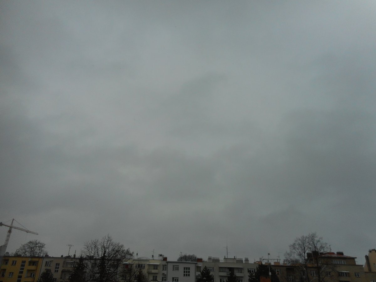 Během dne se oblačnost pomalu protrhávala až na polojasno. Teplota jde dolů. Sníh dole bohužel žádný, od cca 450 mnm je trošku bílo (pár čísel). Více sněhu je pak až od cca 600 mnm (4-8 cm).