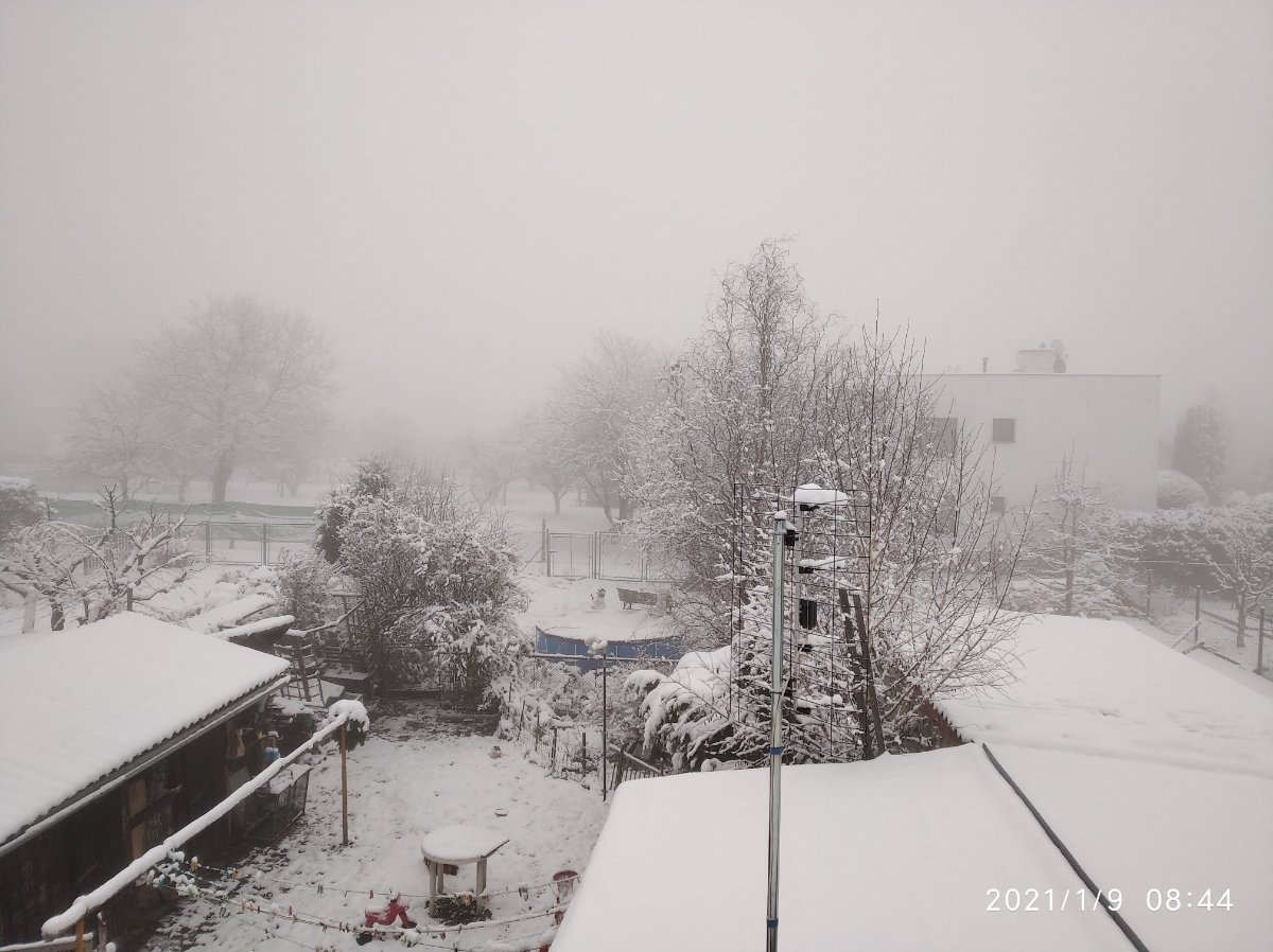 Aktuálně převažuje většinou skoro zataženo a slabounké sněhové přeháňky a fouká většinou slabý vítr