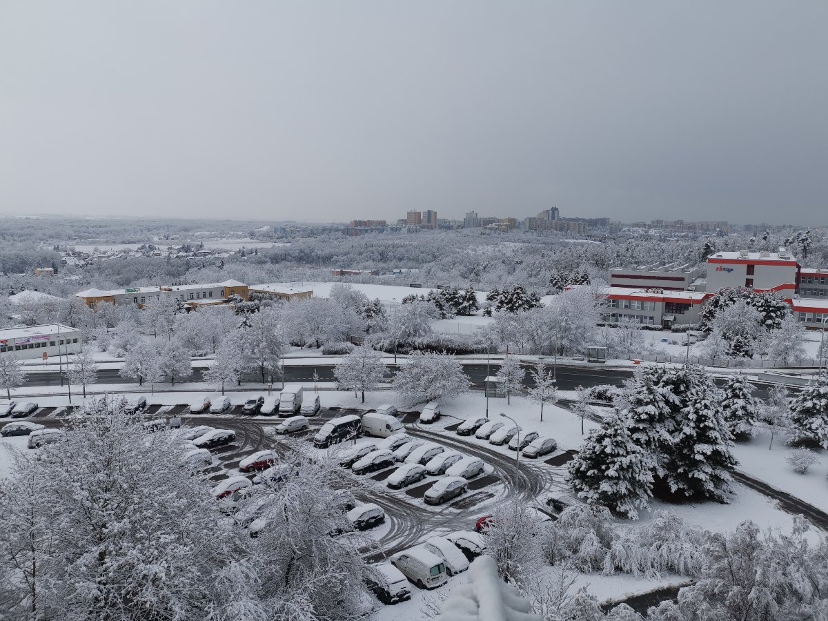 Klidno, slabé sněžení, mlhavo, dohlednost 0.5km, tlak 1017, vlhkost 95%