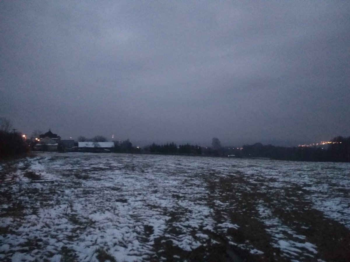 Oblačno až zataženo, občas slabá sněhová přeháňka. Sníh není žádný. Ani poprašek.