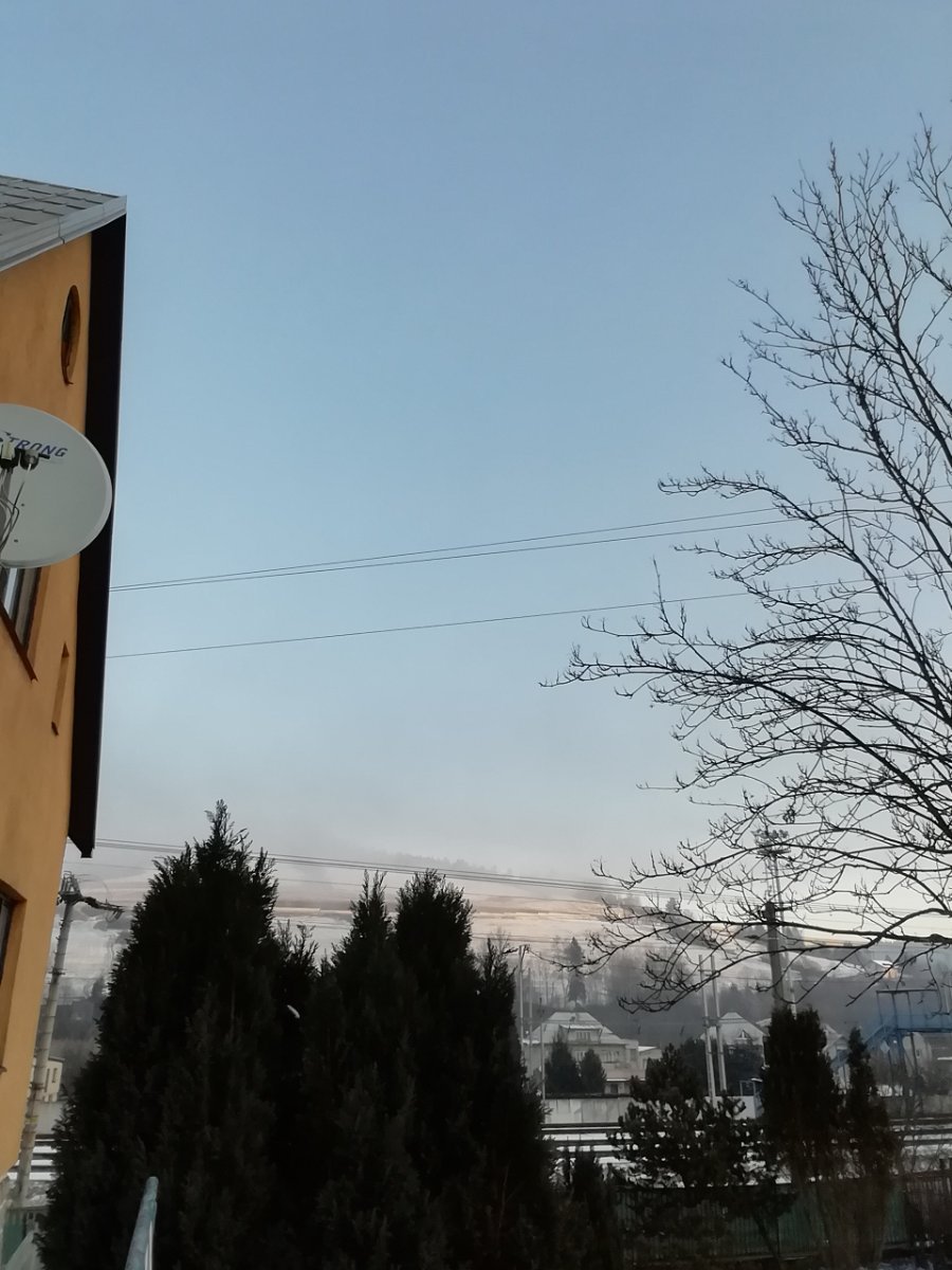 Je slabá mlha a bezvětří.Popadavá trochu sníh.