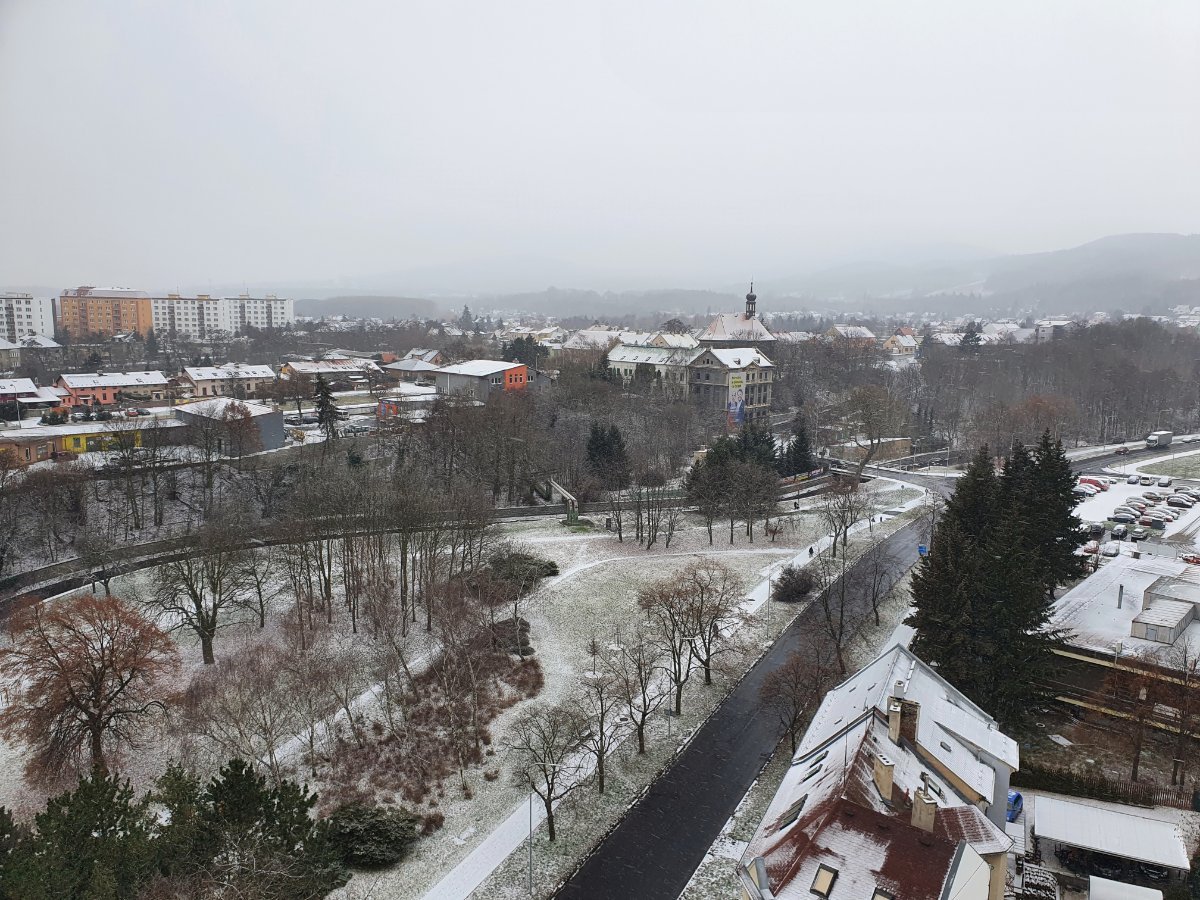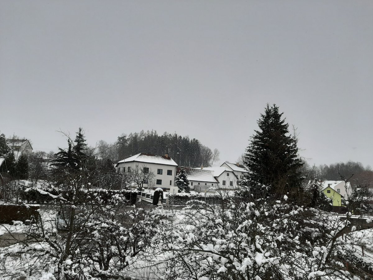 přibližně -4°C oblačno podle radaru má sněžit ale je to v mracích