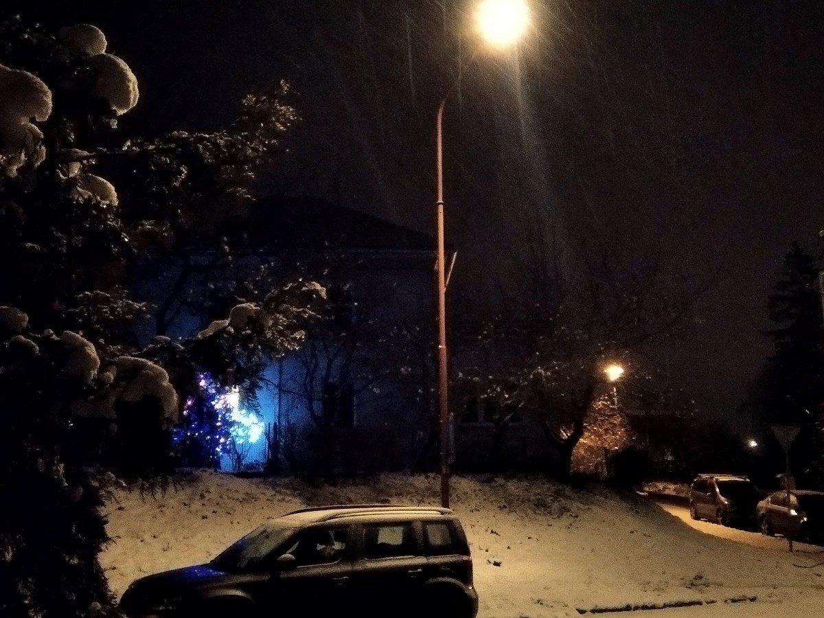 Nyní už jen občas lehce sněží, dřív večer ovšem sněžilo intenzivněji, i přesto však napadly pouze 2cm sněhu. Vane mírný jihozápadní vítr, tlak: 1016hPa.