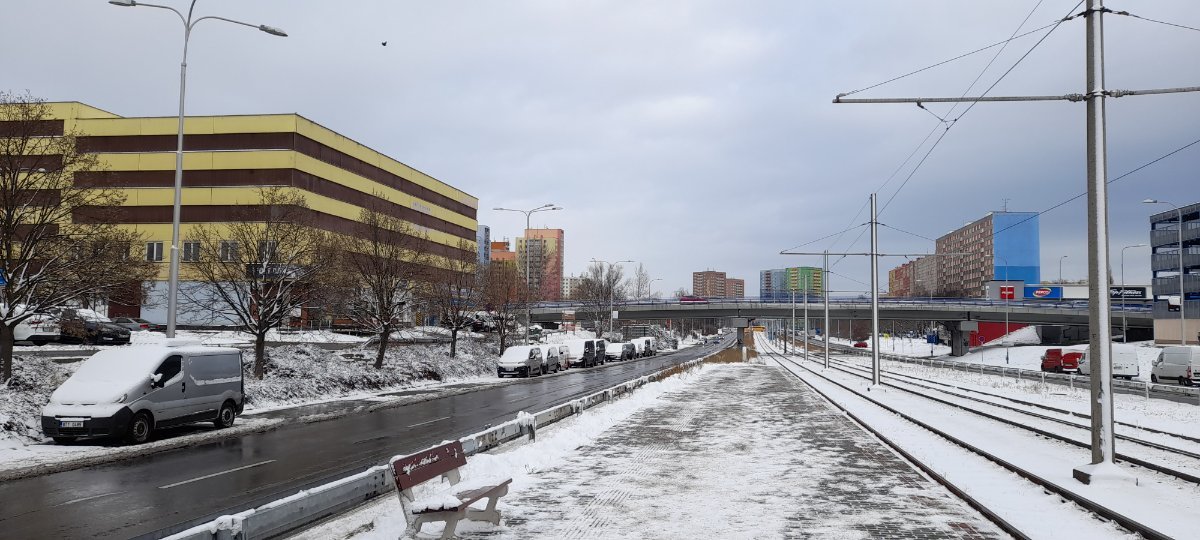 přibližně -2°C sněhové přeháňky teď akorát popadavaji vločky ale blíží se silna přehaňka