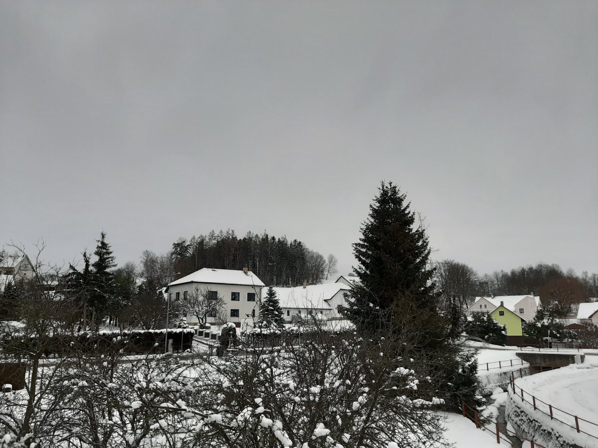 Aktuálně převažuje většinou zataženo a slabě sněží a fouká většinou slabý vítr, sníh díky větru 18-25 cm špatně se měří