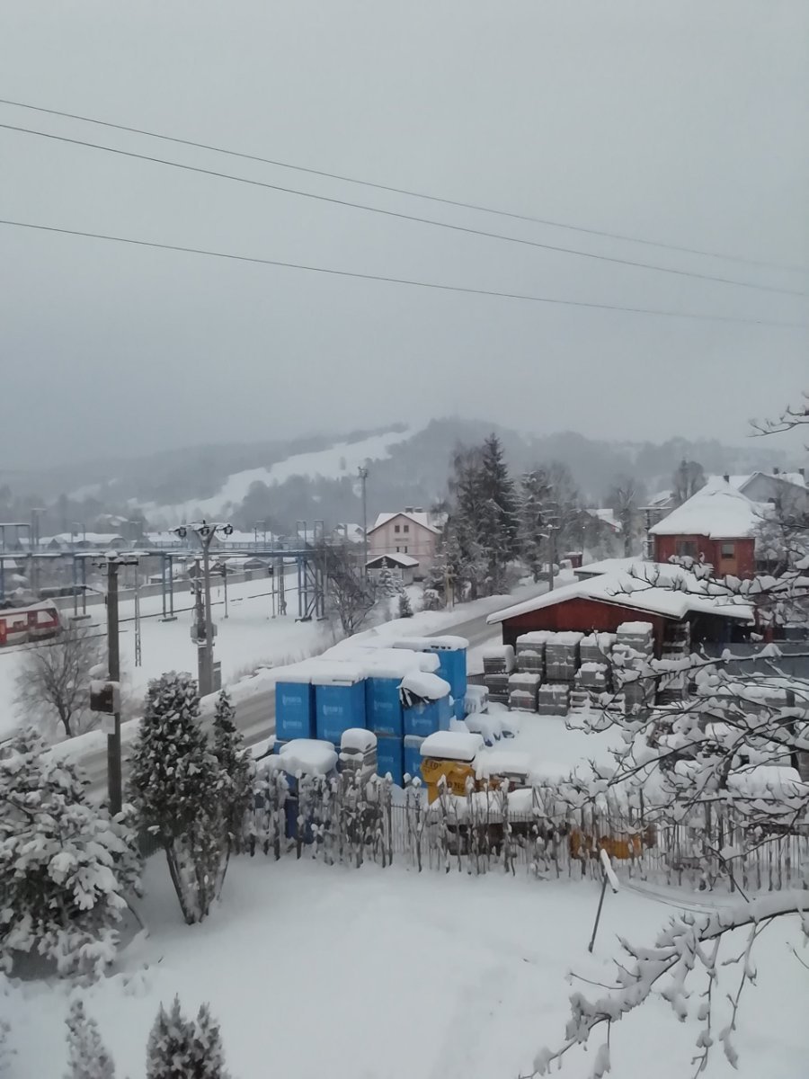 občas sněží, silnice místy kloužou a místy sněhové jazyky, teplota -2°C