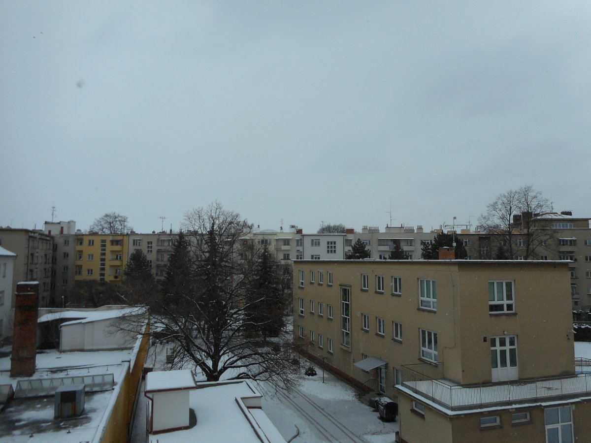 -5,9°C silné sněžení, zima, přibližně 30cm sněhu