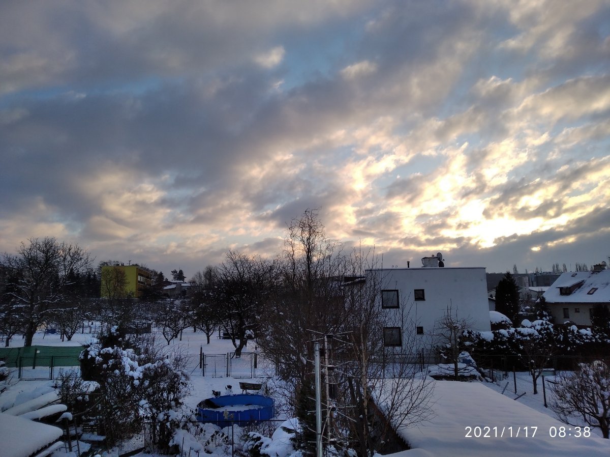 Aktuálně převažuje většinou zataženo a slabě sněží a fouká většinou vánek