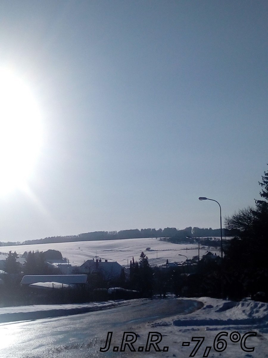 Dnes to byl krásný zimní den :) Během noci na dnešek napadlo 6 cm, celkem máme 14 cm. Aktuálně skoro jasno, teplota letí dolů. Zítřejší ráno bude mrazivé.