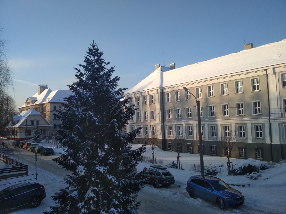 Aktuálně převažuje většinou zataženo a slabě sněží a fouká většinou vánek, velké rampouchy!