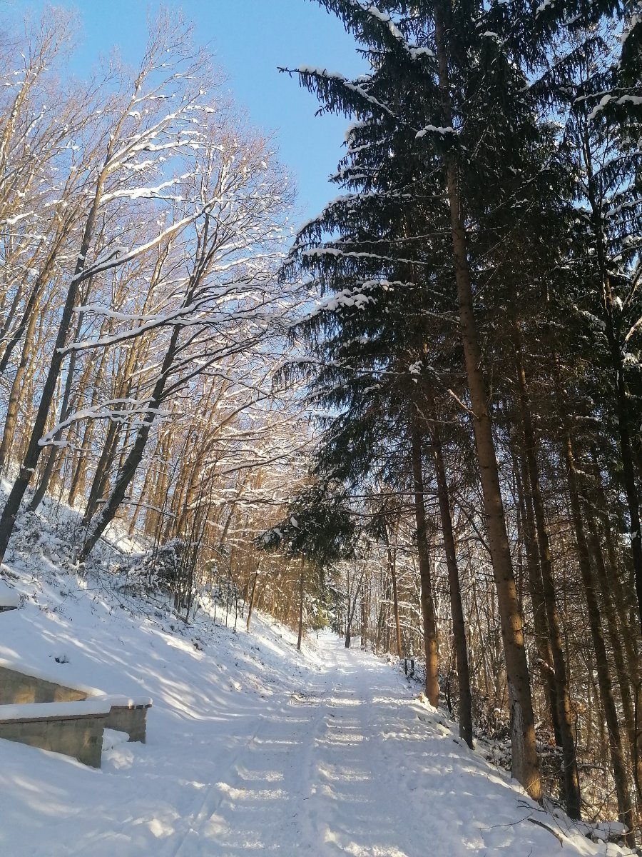 slabě zamrzlá řeka Jihlava // slabé drobné sněžení, -3°C