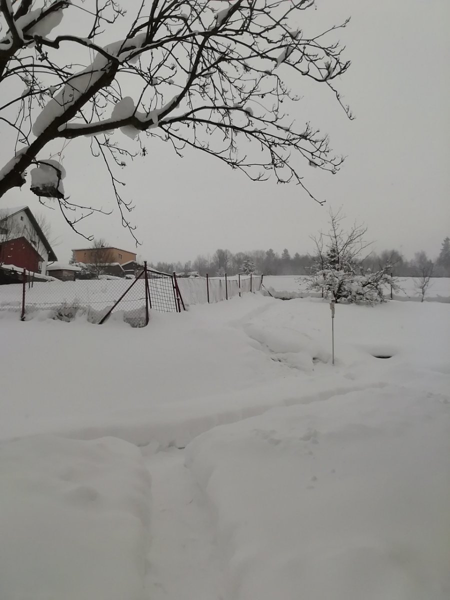fouká JZ slabý vítr, vlhkost 86%, mokrý sníh slehává,drží se.