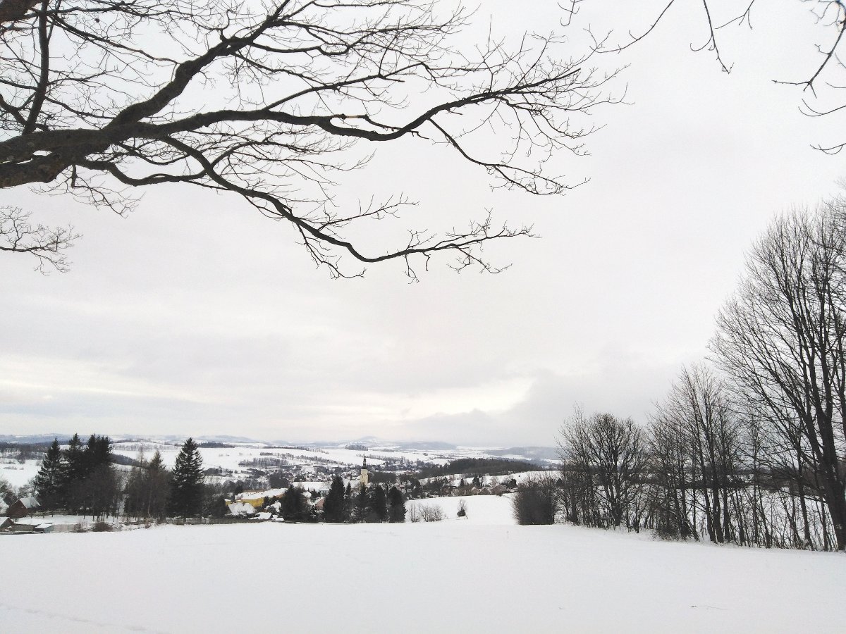 Aktuálně převažuje většinou zataženo a fouká většinou slabý přechodně až mírný vítr, sněhu je hodně ale bude tát