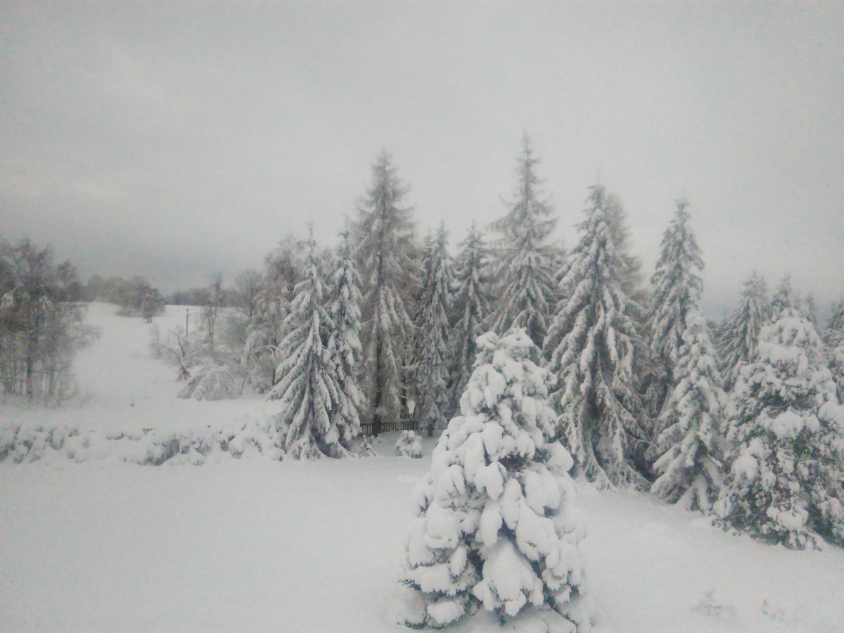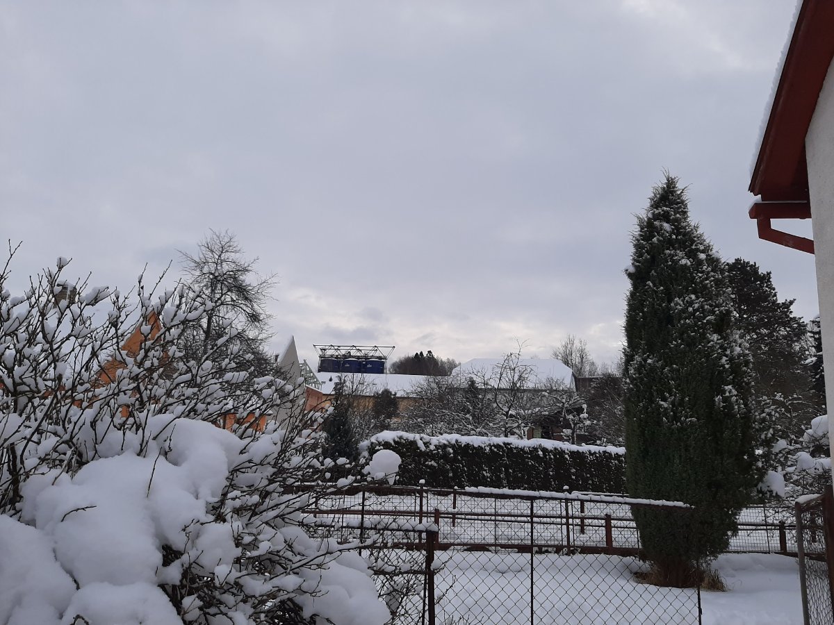 v noci připadlo 5 cm, sníh je mokrý a začíná tát.