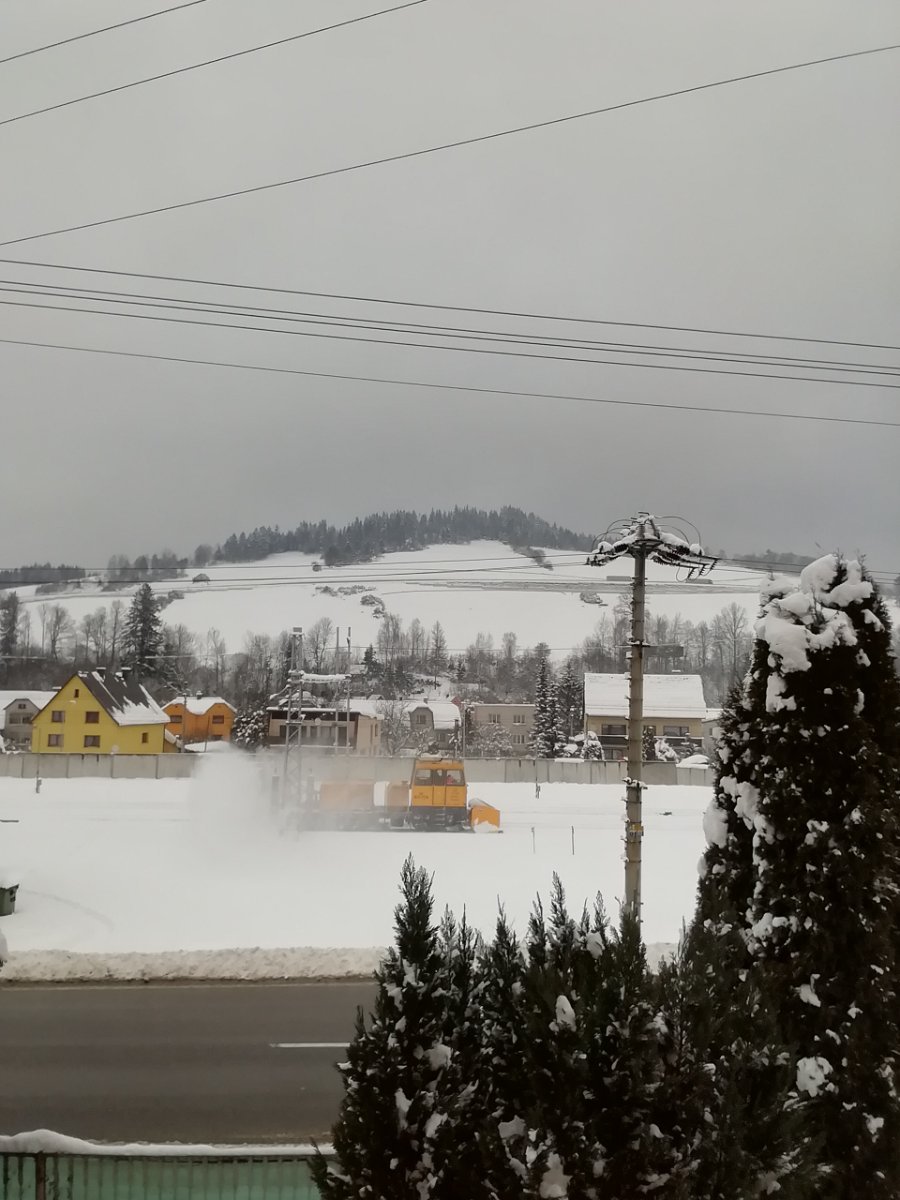 Zataženo, mírné trvalé sněžení, tlak 1012 hPa.