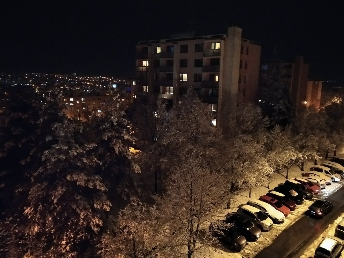 Zasněžený vánoční strom v Praze, Kunraticích.