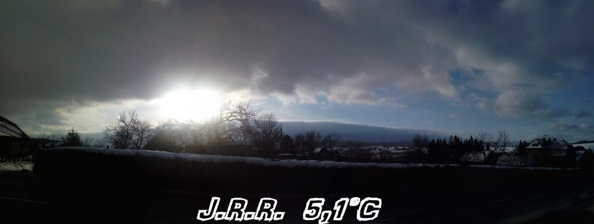 Tak nám to tu taje. Vítr J 5 km/hod, vlhkost 92%.