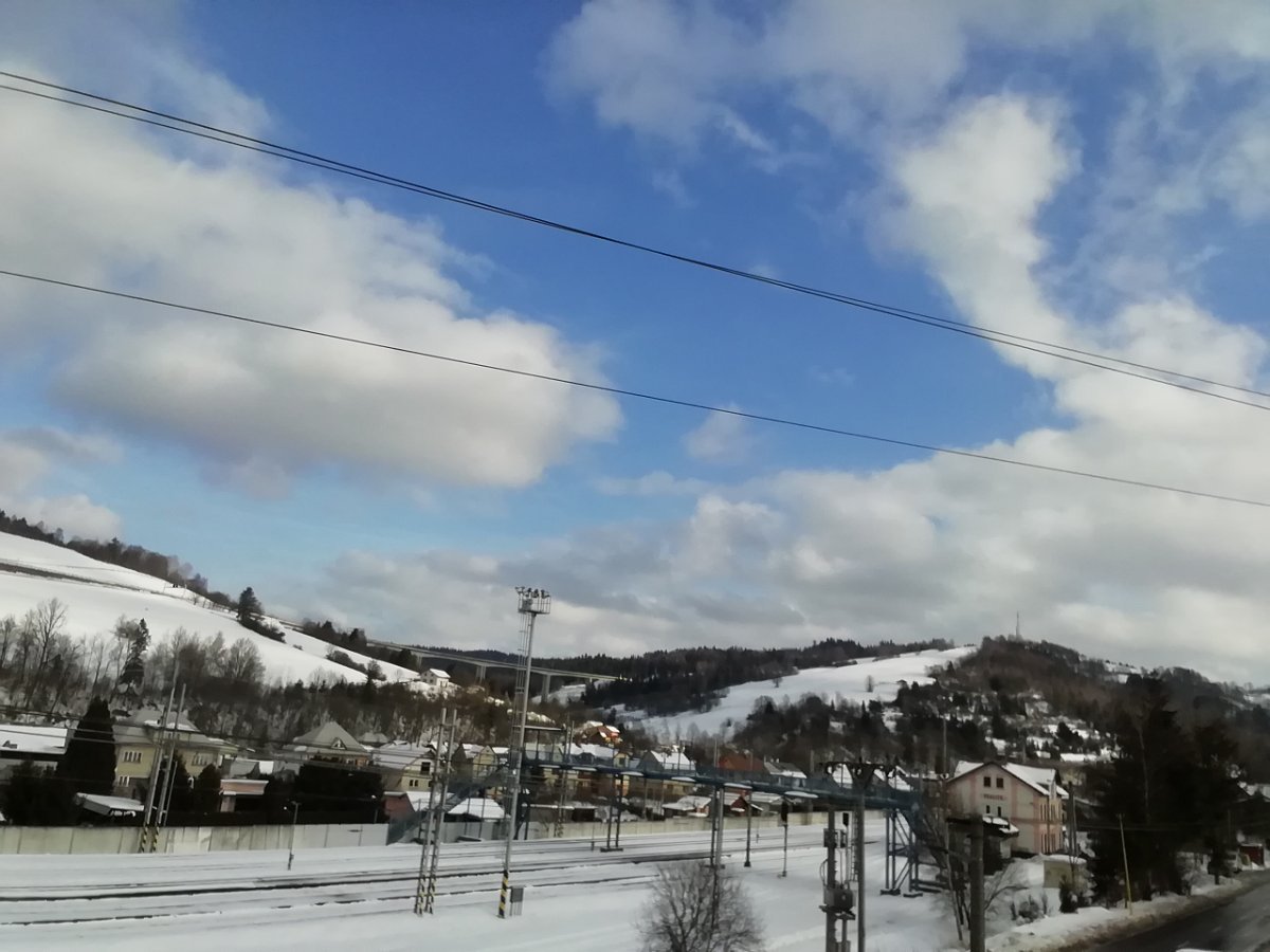 min. -4.5°C / výška sněhu je různá převážně ve městě od 3cm do 10cm na okraji města a v okolí je to zpravidla kolem 10cm/ zataženo, 1°C