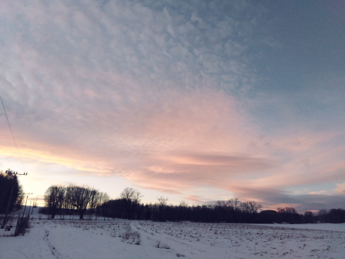 Polojasno, tady na poli 10 cm sněhu a dole u přehrady do 18 cm