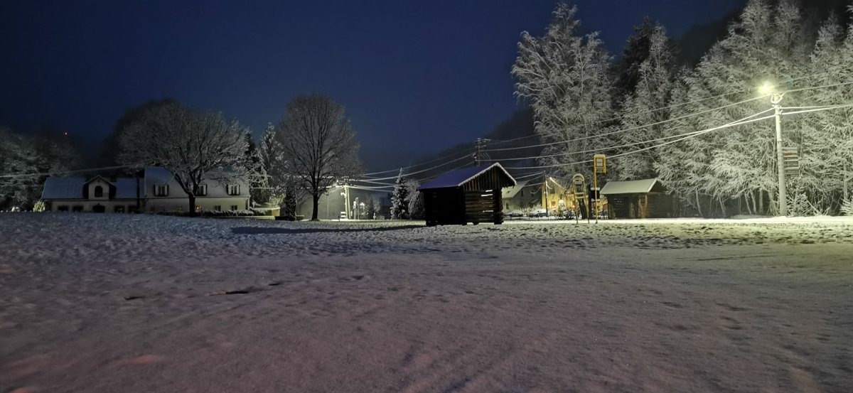 Aktuálně převažuje většinou zataženo a slaboučce sněží a fouká většinou vánek, za noc 1 cm..