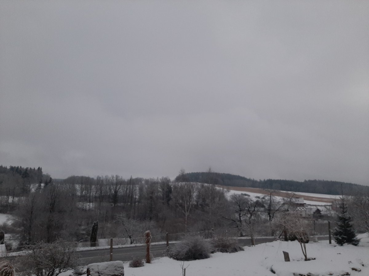 8 cm nového sněhu, tlak 995hpa,vlhkost 86%,klidno...