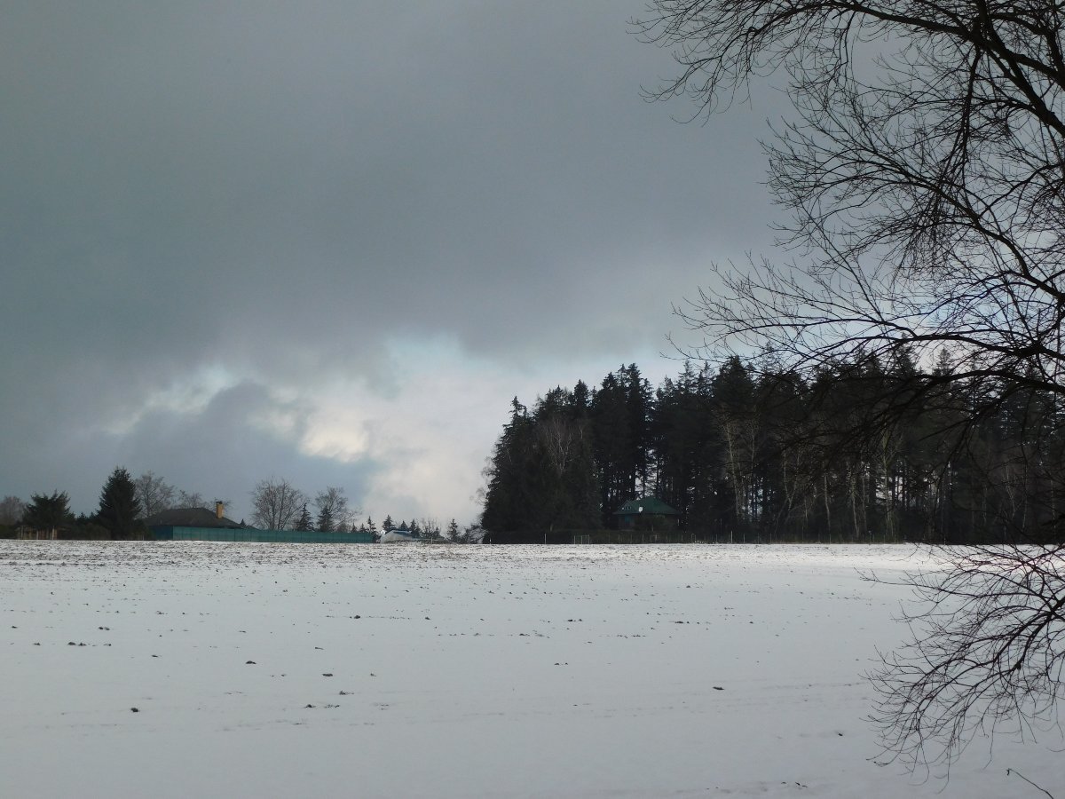 přibližně -1°C drobně sněžení ( proto jsem dal obrázek zataženo)poprašek překvapivě netaje?. jenom na silnicích a někdy na střechách.