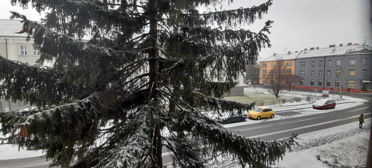 -0,9°C celkem silné sněžení (výška sněhu:0,5-1cm) slabý vítr.