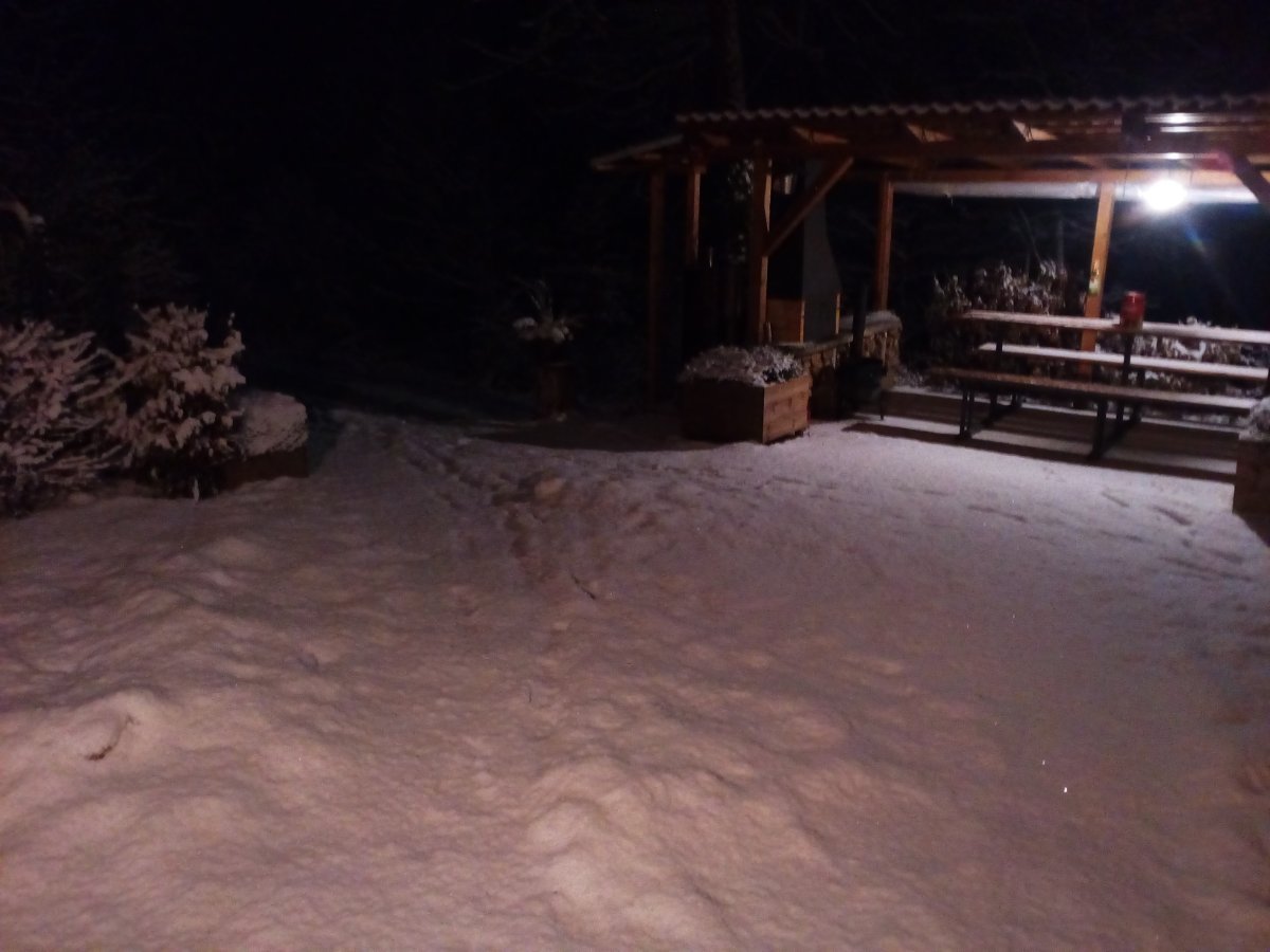 Aktuálně převažuje většinou zataženo a silně sněží (bílá tma) a fouká většinou slabý vítr