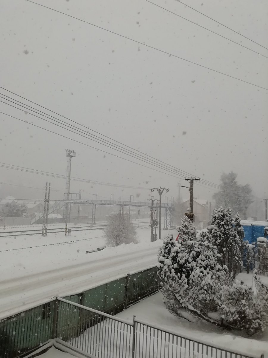 Sněží, oblačnost 100%, tlak 1015,63hPa→, poc.teplota -6,13°C, tepl.ros.bodu -2,58°C, rel.vlhkost 95,1%, abs.vlhkost 4,03g/m3, slabý SSZ vítr 337° 10,044km/hod.(2 Bft), ozon 360,2D.U., UV index 0, windchill -5,28°C, humidex -4,13°C, délka dne 9hod.11min.45vt., světlo 383,8 lx, včerejší průměrná teplota -1,52°C.