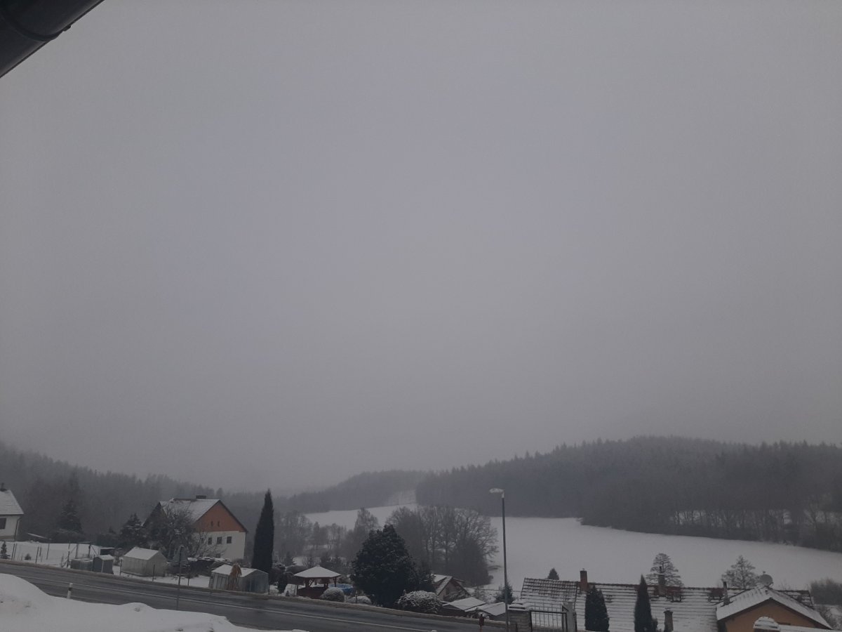 Aktuálně převažuje většinou zataženo a drobně mrholí a fouká většinou vánek, sníh velmi vlhký, včera celkem 4 mm srážek