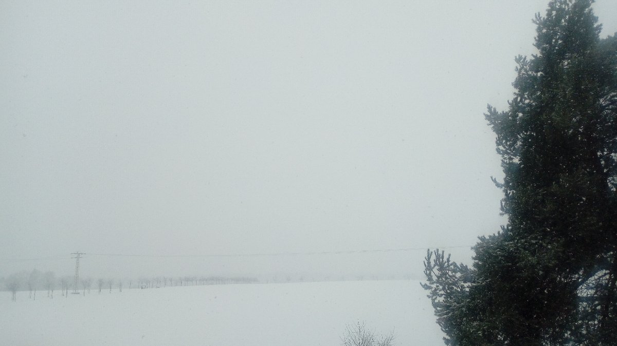 Trvalé a vydatné sněžení. Slabý vítr. Sněhová pokrý vka cca 4 cm.