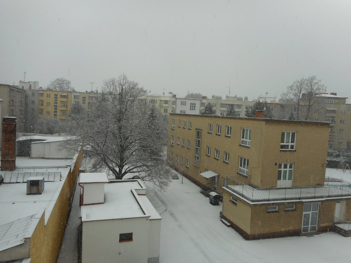 Sněží, oblačnost 100%, tlak 999,99hPa↓, poc.teplota -2,81°C, tepl.ros.bodu -0,04°C, rel.vlhkost 96,9%, abs.vlhkost 4,82g/m3, slabý ZJZ vítr 238° 6,588km/hod.(mírné znečištění ovzduší), UV inde 0,1(nízký), světlo 2863,3 lx.
