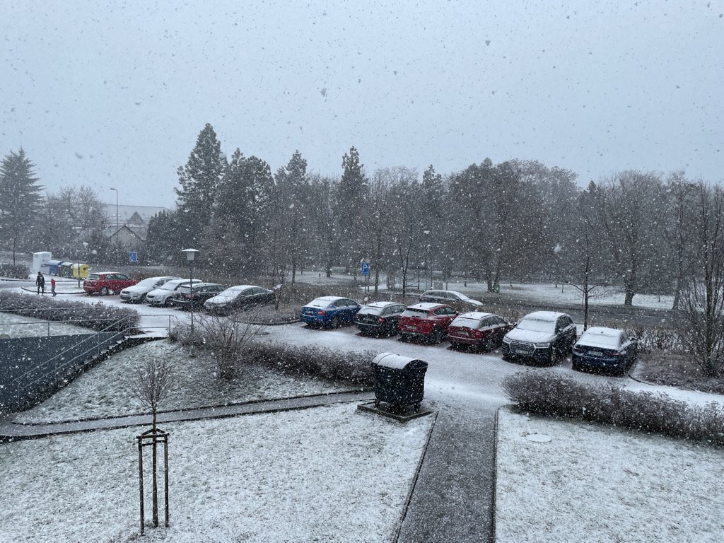 5,4°C, oblačno, sníh taje a sněhulák (spíše čert) taky taje.