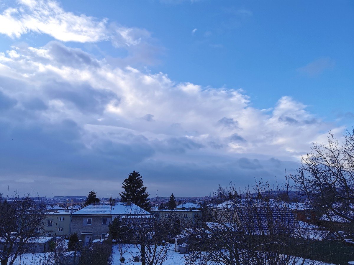 právě trošku padají sněhové krupky s deštěm a je silný vítr.