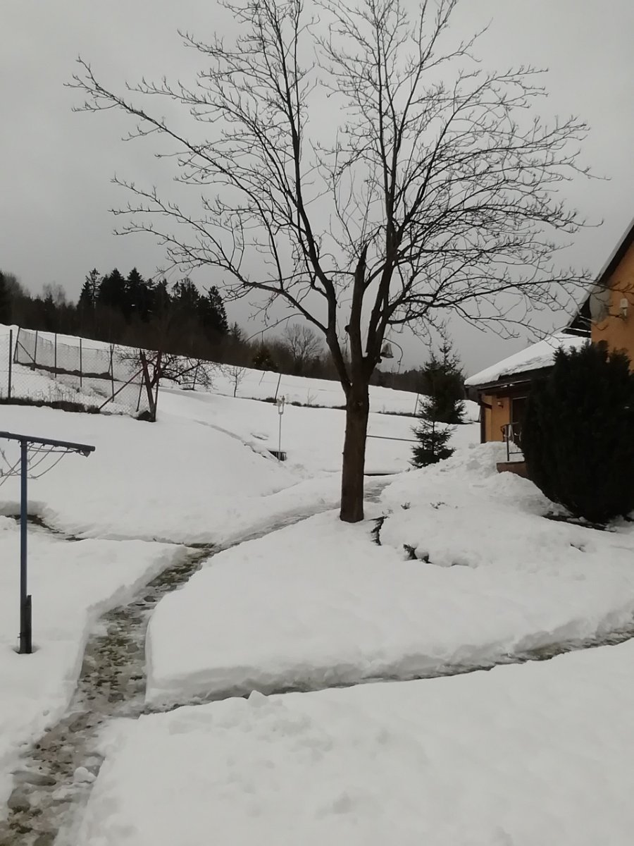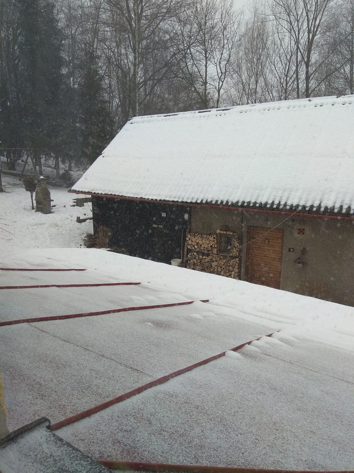 Rychlá změna počasí z +3°C a deště se během dvou hodin ochladilo na -0,5°C a už primrzá,po sněhové přeháňce.