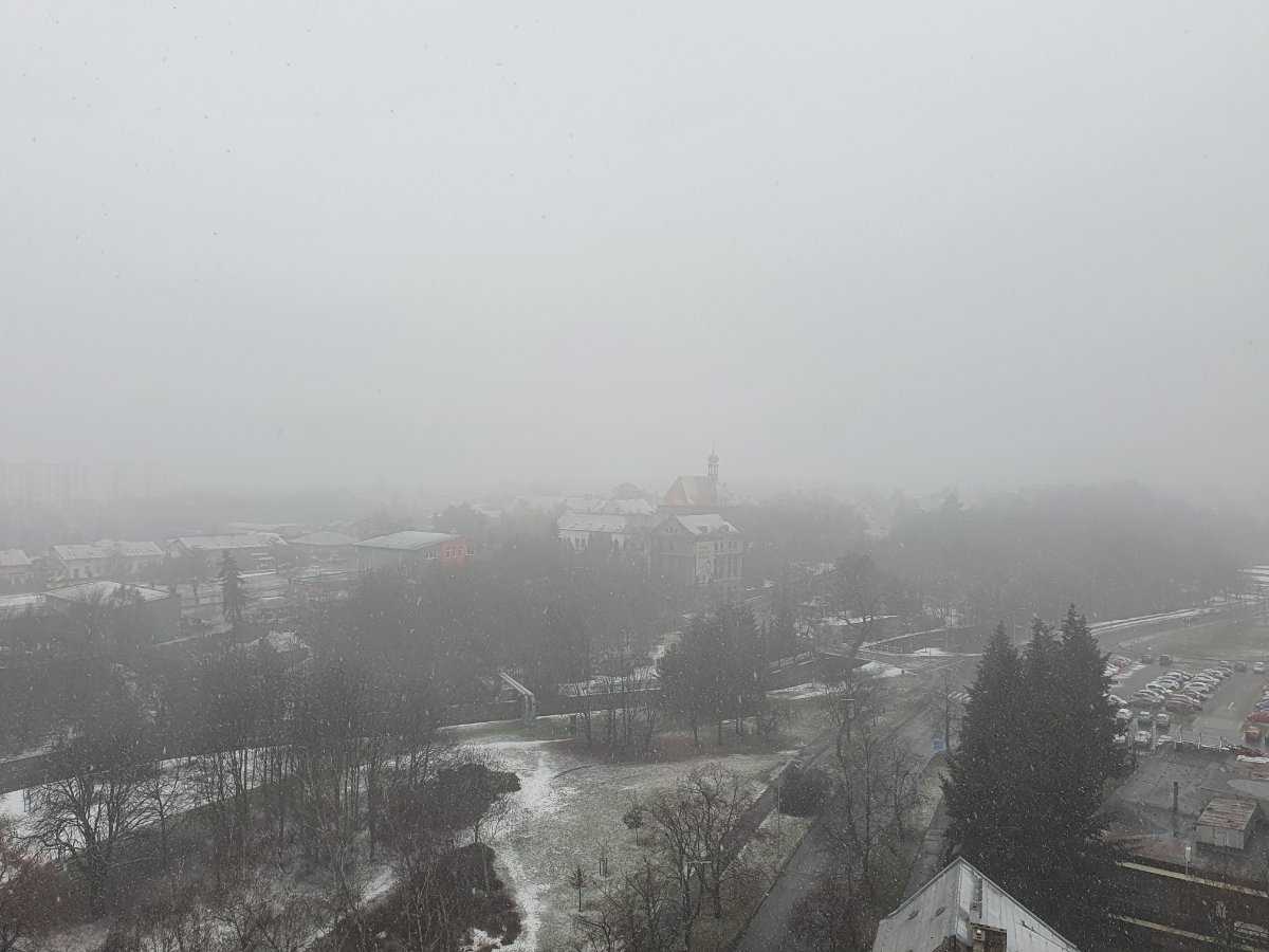 Zamračené, slabé sneženie