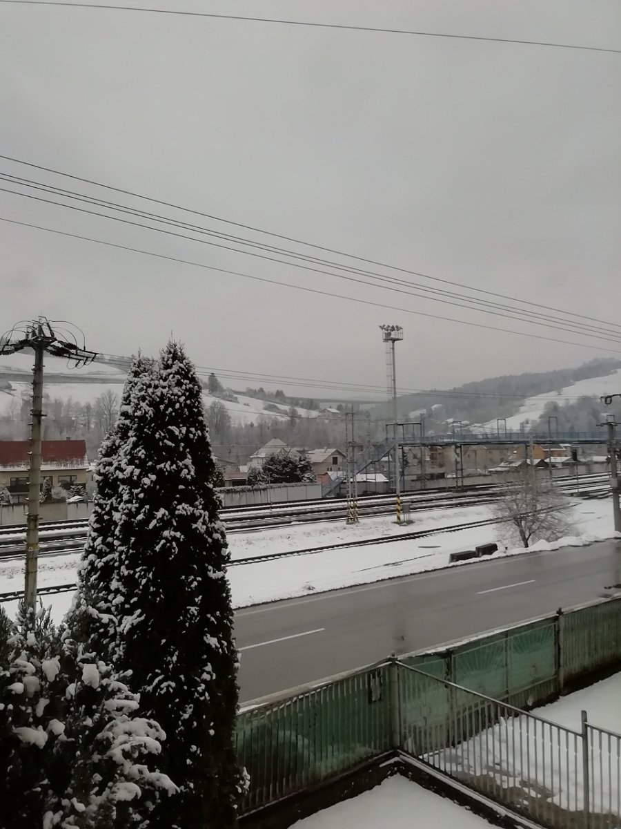 -1,7, slabé sněžení, ale blíží se silnější sněžení.