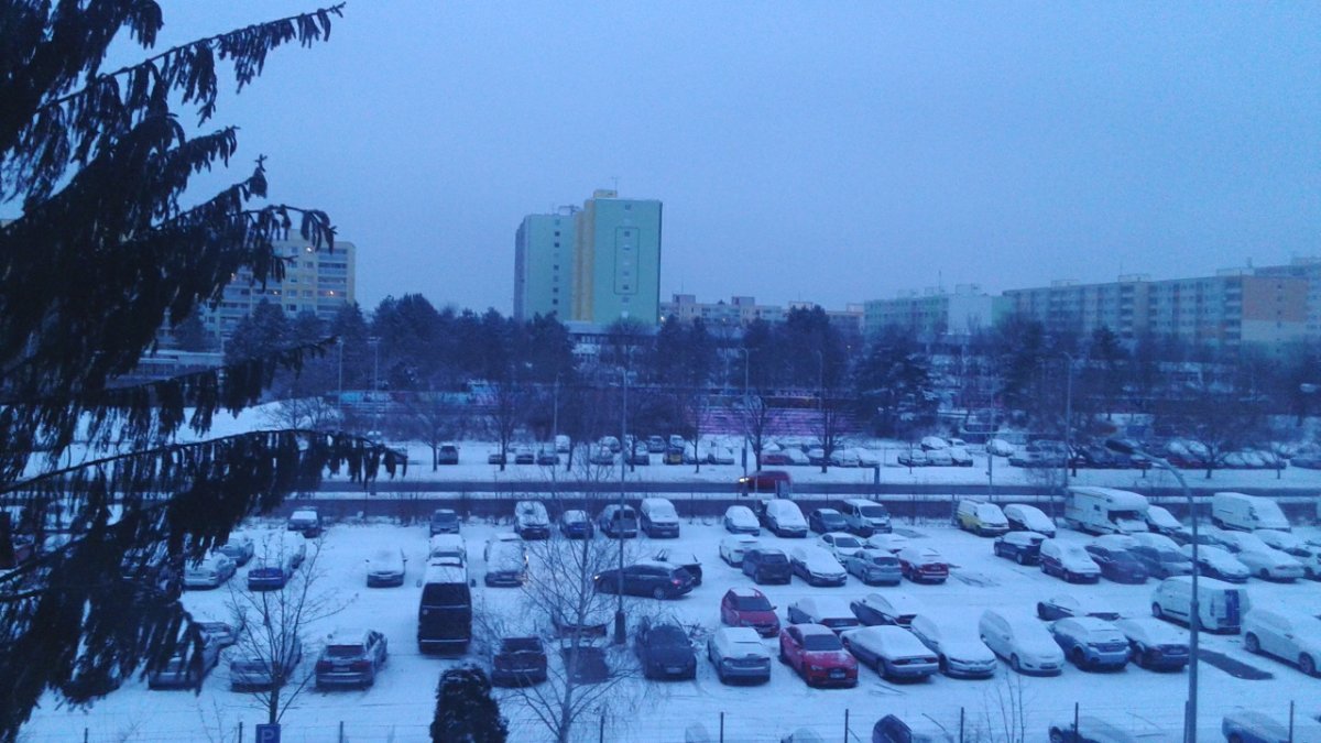 Klidno, bezvětří a všechno zasypáno sněhem. Bohužel písek ze Sahary nás minul.
