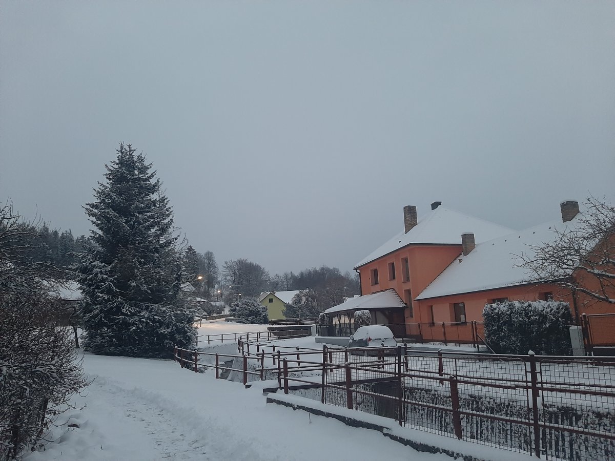 2021 02 08 v 07:21:34 zataženo, napadlo asi 15 cm sněhu , teplota -8°