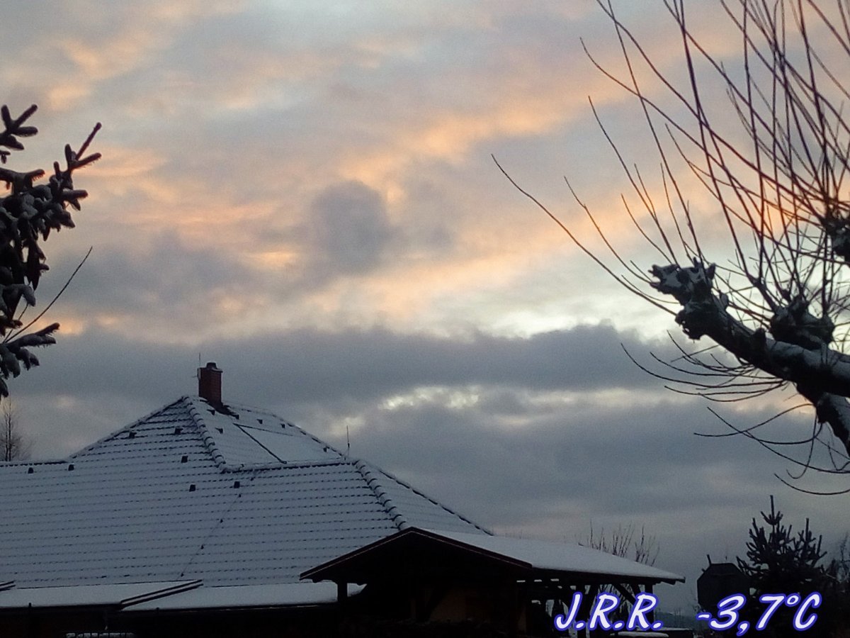 pravděpodobně -4°C, polojasno, v noci připadlo do 2milimetru sněhu (0,2cm).