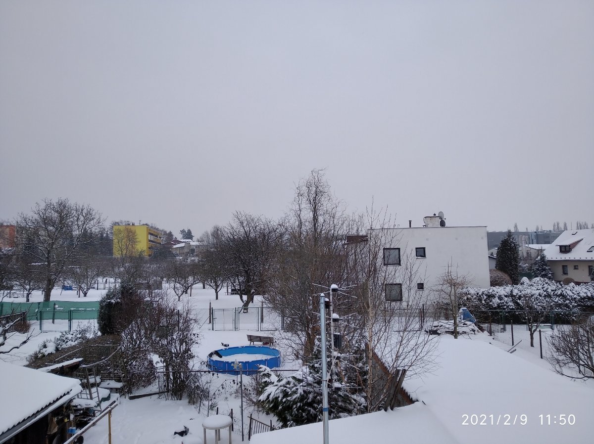 Aktuálně převažuje většinou oblačno a fouká většinou vánek, taková zimní obloha je