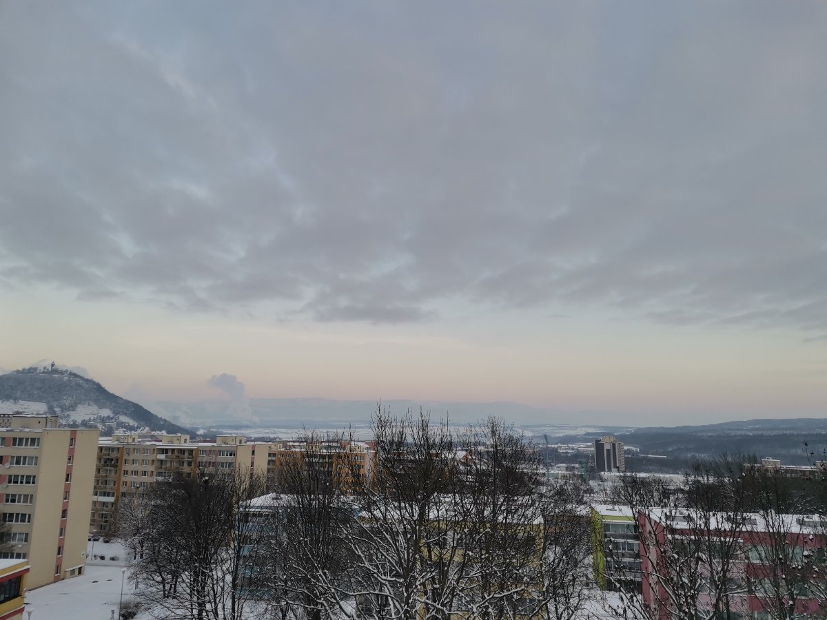 pravděpodobně -4°C, zataženo, slabá mlha, dnes odpoledne má začít silně a vydatně sněžit.