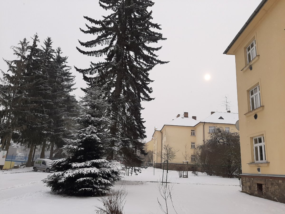 Hustě sněží,klidno,tlak 1004 hPa